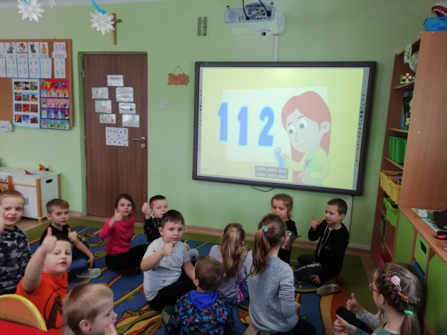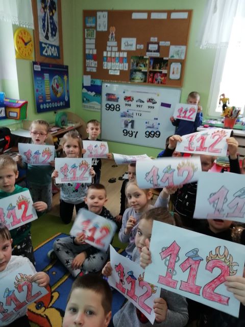 Numer alarmowy „112” jest jednolitym ogólnoeuropejskim numerem alarmowym zarówno dla telefonów stacjonarnych, jak i komórkowych, który służy do powiadamiania w sytuacjach zagrożenia zdrowia, życia lub mienia. 11.02.2021 przedszkolaki przypomniały sobie kiedy i jak należy używać numeru alarmowego  112  i  jakie informacje należy podać w razie zagrożenia.  Dopasowywały numery do odpowiednich służb i  inscenizowały scenki  powiadomień odpowiednich   służb w sytuacjach niebezpiecznych.