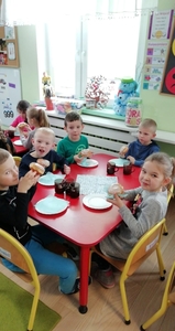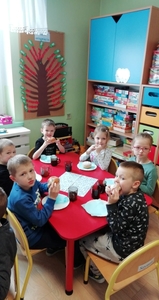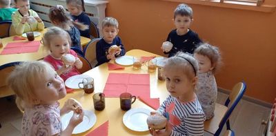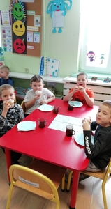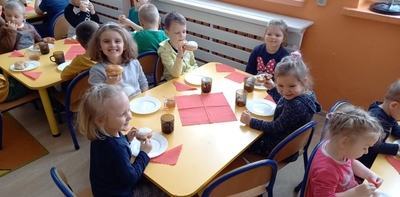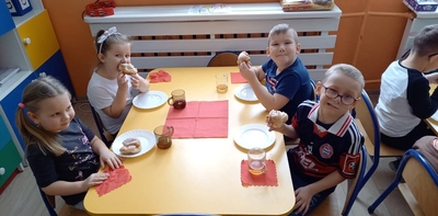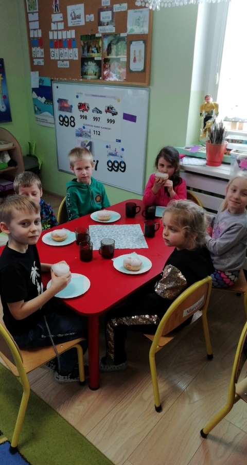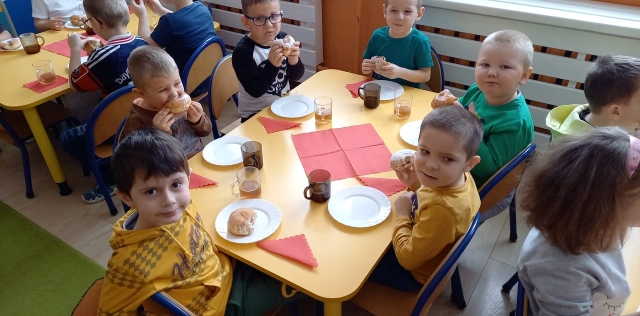 Tłusty czwartek  znany jest  nawet przedszkolakom. To dzień, w którym nie liczymy kalorii i zajadamy się przepysznymi pączkami, faworkami i innymi słodkościami. Tak było i u nas  ciepła herbatka i słodki pączek.