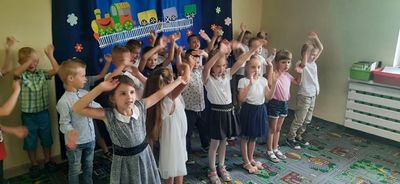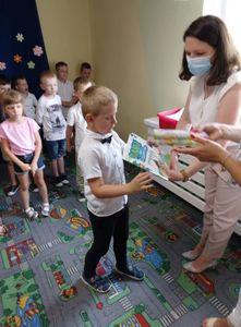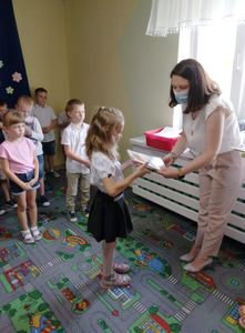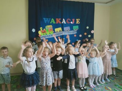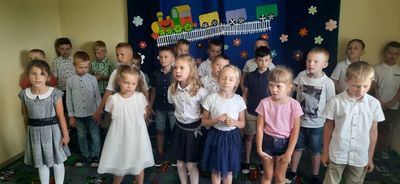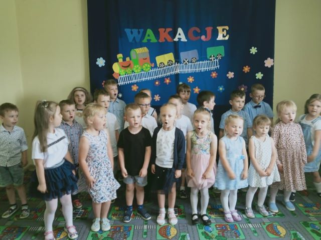 Dziesięć miesięcy wspólnych zabaw i zajęć szybko minęło, aż nadszedł czas wakacji i pożegnań. 25 czerwca 2021r. odbyła się uroczystość zakończenia roku szkolnego przez przedszkolaków. Pani dyrektor Ilona Słupczyńska powitała dzieci i złożyła każdej grupie życzenia na wakacje. Dzieci wyrecytowały wiersze i odśpiewały piosenki o upragnionych wakacjach. Spotkanie zakończyło się wręczeniem dyplomów i upominków ufundowanych przez Radę Rodziców.