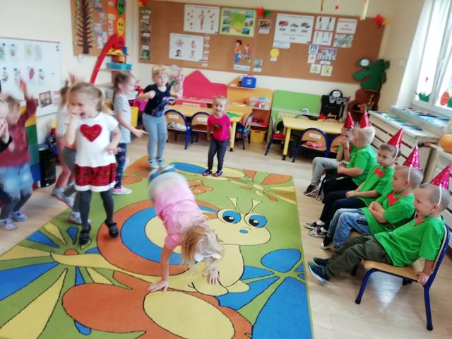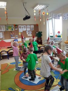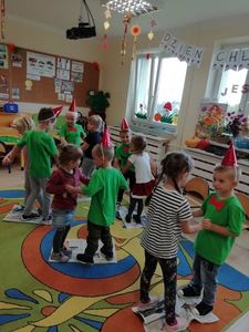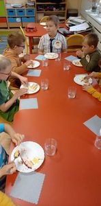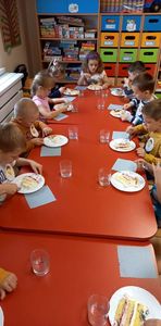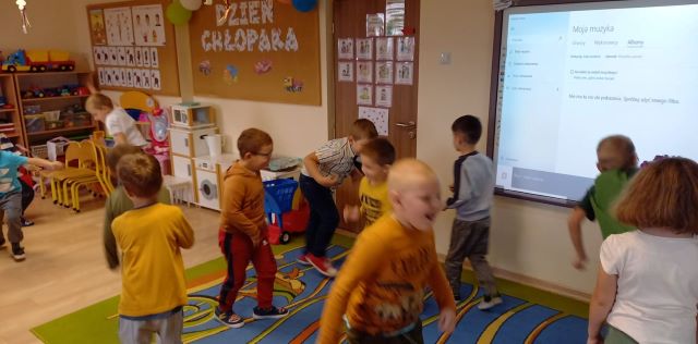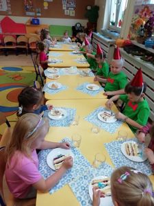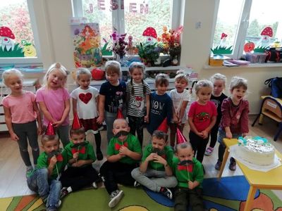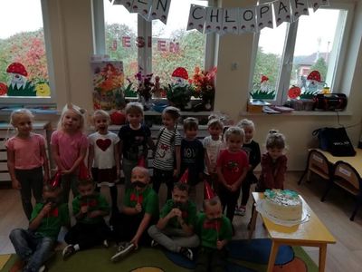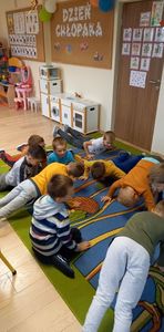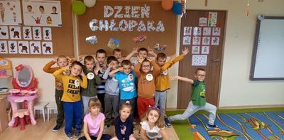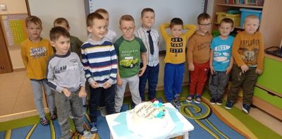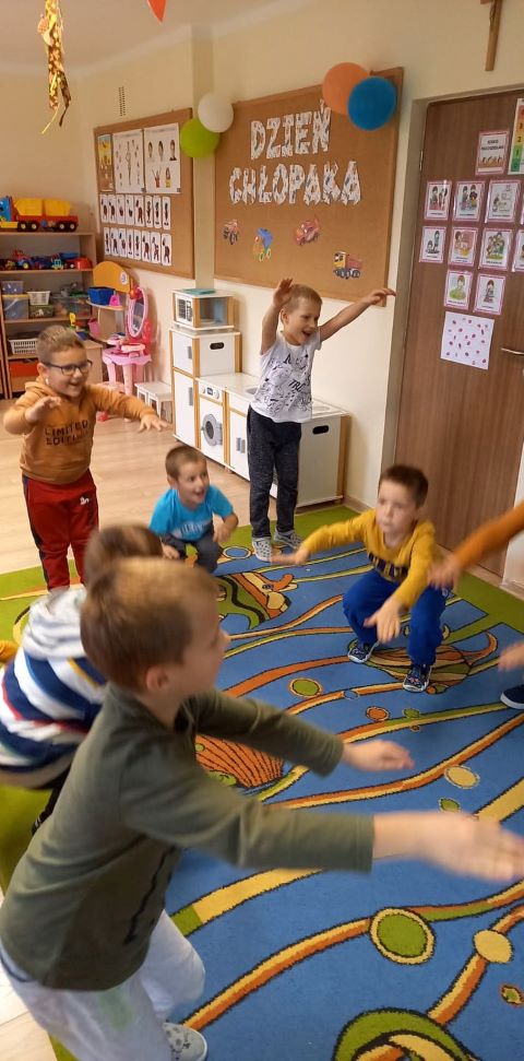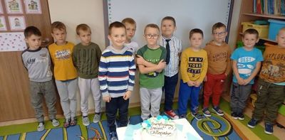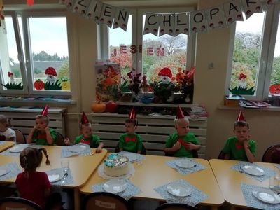 Ten dzień był wyjątkowy dla wszystkich dzieci, a szczególne chłopców. Z racji ich święta dziewczynki złożyły chłopcom najlepsze życzenia i zaśpiewały "Sto lat". Było mnóstwo dobrej zabawy, radości, trochę sportowej rywalizacji, konkurencje  na szybkość, wytrzymałość i sprawność . Chłopcy tego dnia spisali się na medal, oby takich dni było więcej. Nagrodą dla wszystkich dzieci był słodki poczęstunek - smaczny tort.