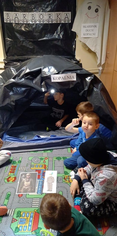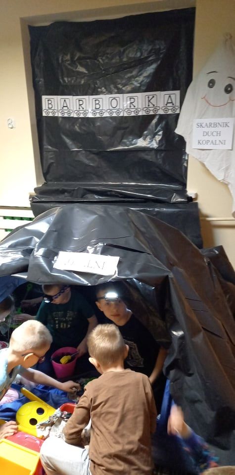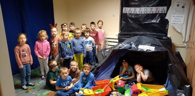 Barbórka w naszym przedszkolu przebiegła bardzo pracowicie. Dzieci poznały zawód  górnika. Dowiedziały się jakimi narzędziami posługują się górnicy. Dlaczego święto nazywa się Barbórka. Jak nazywa się czapka górnika, którą wykonały. Poznały legendę o „Skarbniku duchu  kopalni”.  Na koniec same zostały górnikami,  wydobywając węgiel w kopalni.