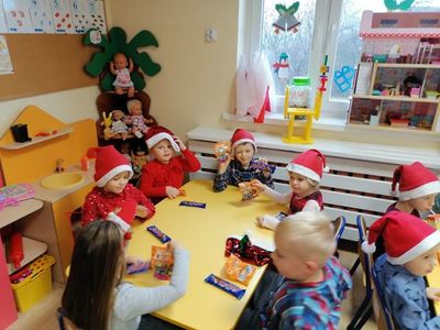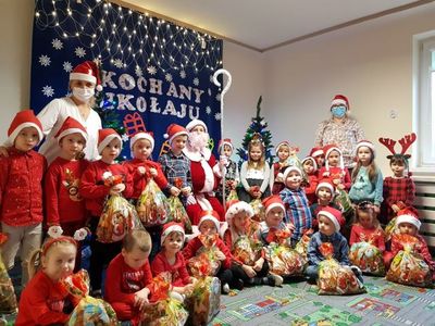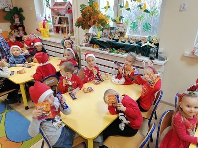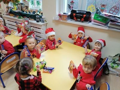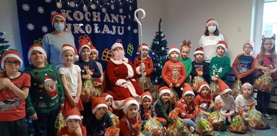 Dnia 06 grudnia zawitał do naszego przedszkola wspaniały, długo oczekiwany gość Święty Mikołaj. Na powitanie zaśpiewaliśmy dla niego piosenkę i powiedzieliśmy wiersz. Świętemu Mikołajowi aż nogi rwały się do tańca, a gdy skończyliśmy śpiewać obdarował nas  prezentami.    Cieszymy się, że  Św. Mikołaj o nas pamiętał.