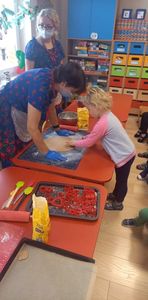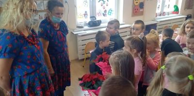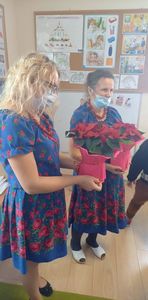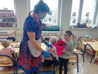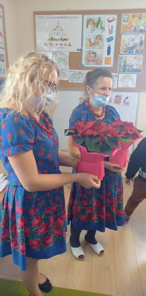 W podziękowaniu zaśpiewaliśmy kolędy i wręczyliśmy przemiłym paniom  piękne kwiaty.