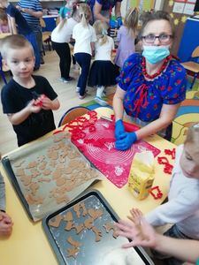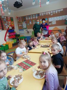 W naszym przedszkolu 9 grudnia było czuć, że zbliżają się Święta Bożego Narodzenia. W całym budynku pachniało pierniczkami. Panie  z Koła Gospodyń Wiejskich w Kozłowie upiekły razem z nami przepyszne pierniczki. Polukrowane, posypane kolorowymi cukiereczkami  bardzo szybko zniknęły z talerzyków.
