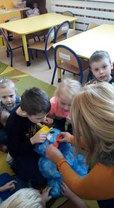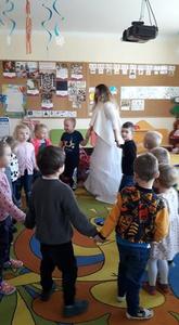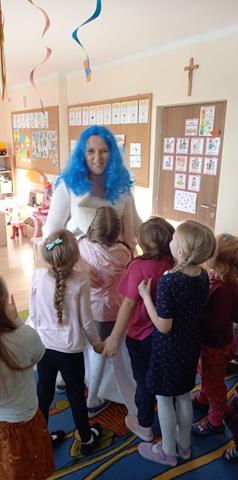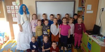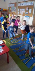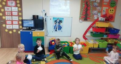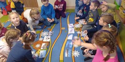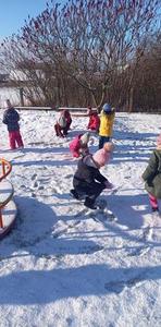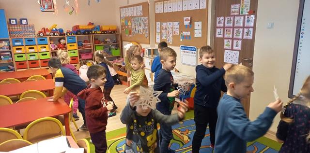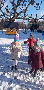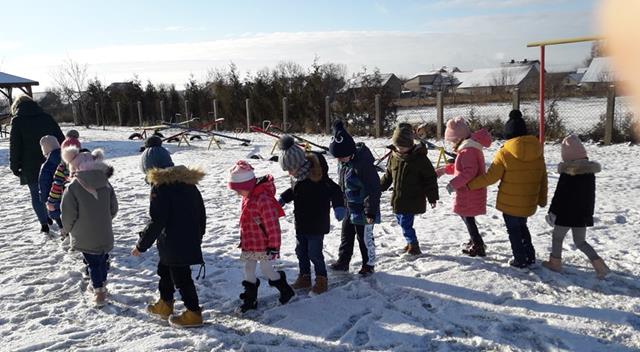 Zima, zima, zima pada, pada śnieg….tak śpiewają dzieci w przedszkolu. Zima usłyszała i przykryła świat białym, puszystym śniegiem. My się z tego cieszymy i dlatego 21.12.2021 powitaliśmy Zimę. Z ciekawością słuchaliśmy opowieści Pani Zimy, o jej białym królestwie, rozwiązywaliśmy zimowe  quizy i zagadki. Tańczyliśmy ze śnieżynkami przy zimowej muzyce. Choć ze śniegu jeszcze nie można ulepić bałwana to i tak w grupie Słoneczka stanął  wspaniały bałwanek. Tego dnia nie mogliśmy zapomnieć o głodnych  ptaszkach, dlatego zawiesiliśmy dla nich karmniki pełne pyszności. Na koniec była bitwa na śnieżki, a najbardziej odważni robili aniołki na śniegu.