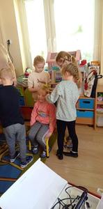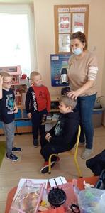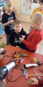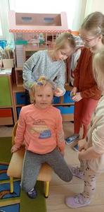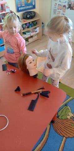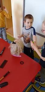 Najpierw włosy ścina, często je farbuje, a na końcu pięknie je wymodeluje. Czy  wiecie kto to jest?. Oczywiście fryzjer. My zapoznaliśmy się z pracą fryzjera, poznaliśmy  narzędzia oraz przybory fryzjerskie. A potem zaczęła się fajna zabawa.