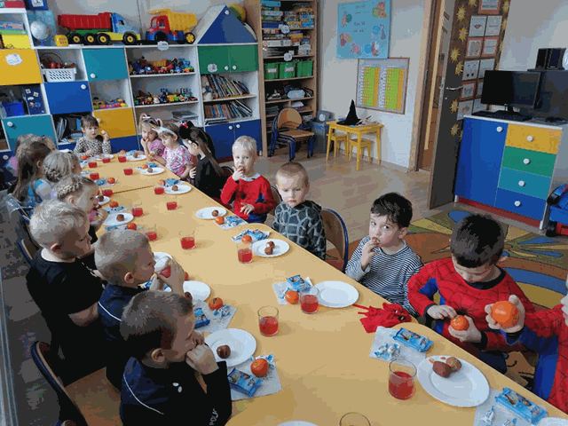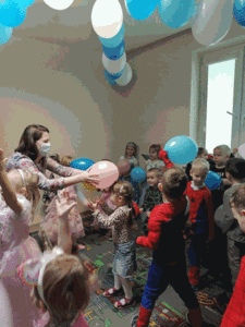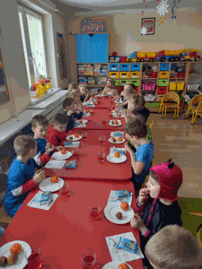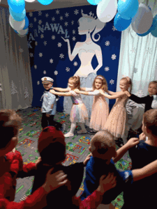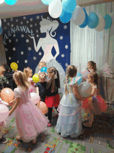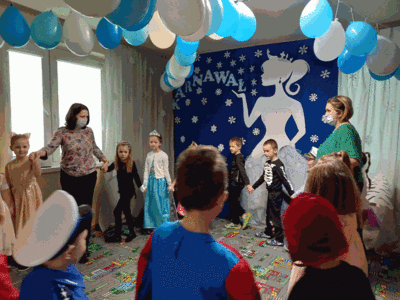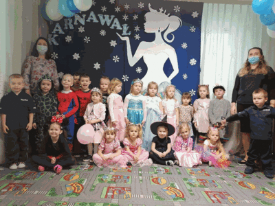 Już cały poprzedni tydzień można było słyszeć rozmowy dzieci: Ja będę księżniczką!, Ja będę policjantem!, Ja będę Batmanem!. I nadszedł długo wyczekiwany dzień balu karnawałowego. 02.02.2022 zaraz po śniadaniu dzieci w kolorowych strojach zaczęły wspaniale się bawić w rytm znanych przebojów. Ciekawe konkursy przyniosły wiele radości i uśmiechu. Oczywiście ze względu na pandemię każda grupa bawiła się oddzielnie. Po balu był słodki poczęstunek.