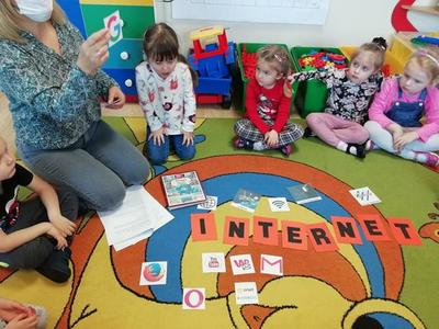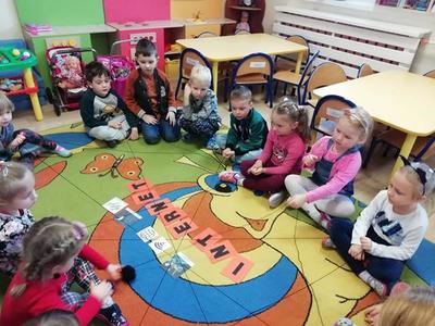 W ostatnich latach coraz młodsze dzieci korzystają z Internetu. Nie można im tego zabronić, ale trzeba im uświadomić jakie są zagrożenia w sieci. Dlatego w przedszkolu odbyły się zajęcia dotyczące bezpieczeństwa w sieci. Dzieci poznały podstawowe zasady bezpiecznego korzystania z Internetu. Stworzyły własną sieć i obejrzały bajki z serii „Owce w sieci”.