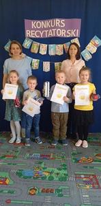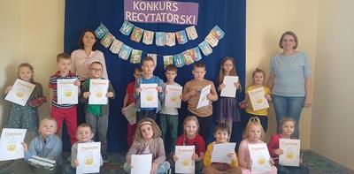 Wszyscy uczestnicy konkursu za piękną recytację i udział w konkursie otrzymali gromkie brawa, pamiątkowe dyplomy i drobne upominki. Serdecznie dziękujemy rodzicom za przygotowanie dzieci do konkursu.