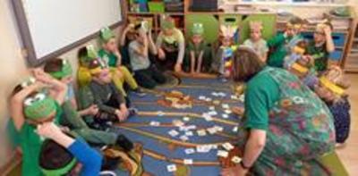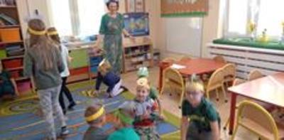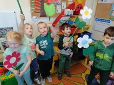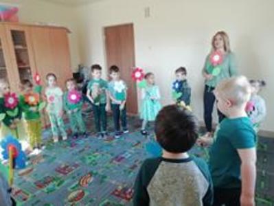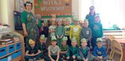Wreszcie nadeszła długo wyczekiwana wiosna. Od rana zazieleniło się w naszym przedszkolu, ponieważ każdy przyszedł ubrany na zielono. Przedszkolaki śpiewały i recytowały wiersze o wiośnie. Rozwiązywały wiosenne zagadki, rozpoznawały i szukały zwiastunów wiosny. Potem wyprowadziliśmy na podwórko Marzannę aby pożegnać zimę, a powitać wiosnę.