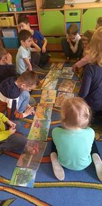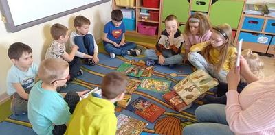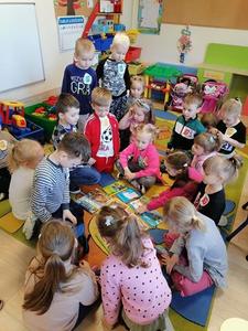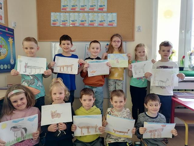 Dnia 25 kwietnia przedszkolaki obchodziły Światowy Dzień Książki. Dzieci dowiedziały się jak powstaje papier, jak powstają książki, gdzie można je kupić lub wypożyczyć. Z zaangażowaniem szukały skarbu w którym ukryte były książki, rozwiązywały rebusy i zagadki. Dzieci poznały również zasady dbania o książki. Wcieliły się w rolę ilustratorów i wykonały „Album zwierząt”.
