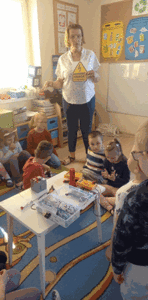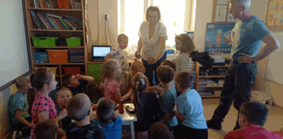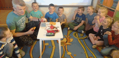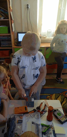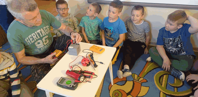 W poniedziałek przedszkolaki z grupy Żabki poznały zawód elektryka w ramach projektu edukacyjnego „Poznajemy zawody”. Dzieci dowiedziały się jak powstaje prąd i w jaki sposób dociera do naszych domów. Nasz konserwator, pan Sławek pokazał nam narzędzia, jakich używa elektryk, przewody elektryczne, mierniki prądu i wiele innych urządzeń. Zademonstrował jak probówką sprawdzić czy w gniazdku płynie prąd. Przypomniał nam też zasady bezpieczeństwa podczas pracy z prądem.
