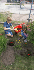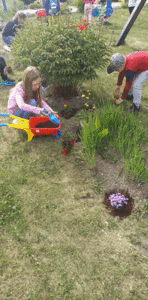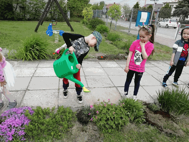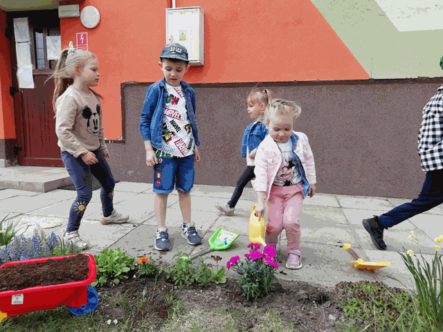 Przed naszym przedszkolem zrobiło się kolorowo, a to z sprawą kwiatków przyniesionych i posadzonych przez dzieci.  Rodzice zakupili piękne bratki, stokrotki, goździki, begonie  itp., które dzieci posadziły na rabatkach przed przedszkolem. Akcja sadzenia kwiatów  ma zachęcić dzieci do dbania o otoczenie naszego przedszkola.