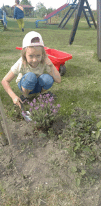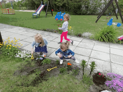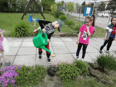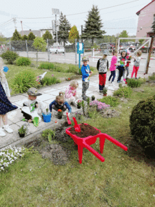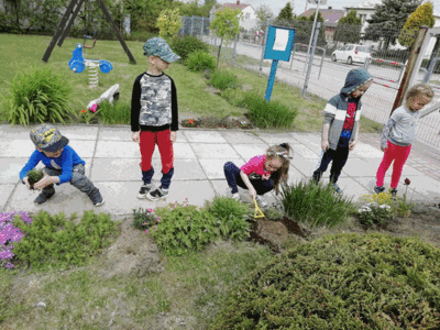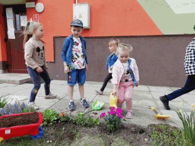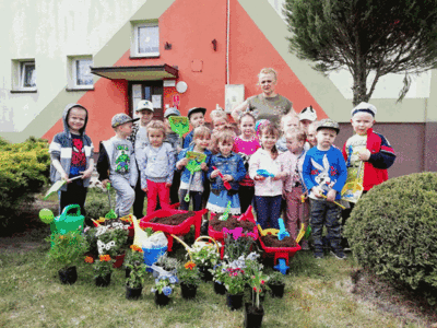 Akcja „Kolorowe kwiatki na przedszkolne rabatki”.