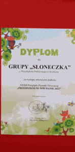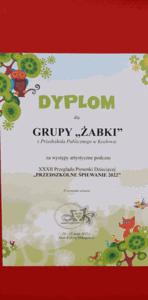 We wtorek 24.05.2022 odbył się XXXII Przegląd Piosenki Dziecięcej “Przedszkolne Śpiewanie”. Imprezę otworzył Burmistrz Miasta i Gminy Małogoszcz – Mariusz Piotrowski. W tym dniu oprócz nas w przeglądzie wzięły udział dzieci z przedszkoli z Małogoszcza i Żarczyc Dużych. Wszystkie występy były wspaniałe i nagrodzone gromkimi brawami. My zaśpiewaliśmy następujące piosenki: grupa Żabki – „Idą witaminki”, grupa – Słoneczka „Popatrzcie na jamniczka”.