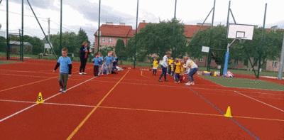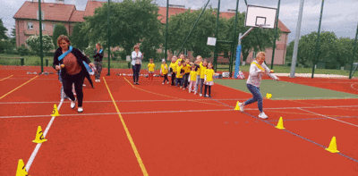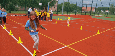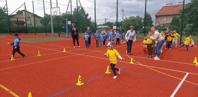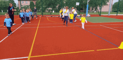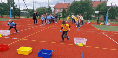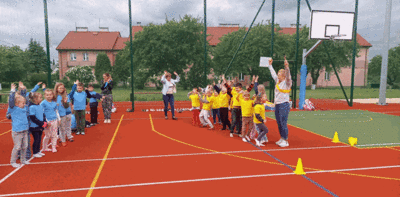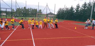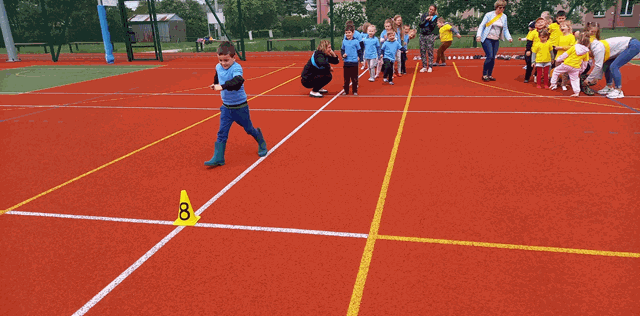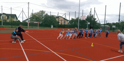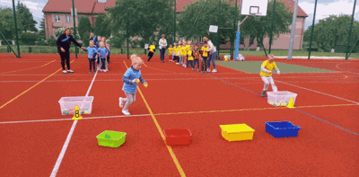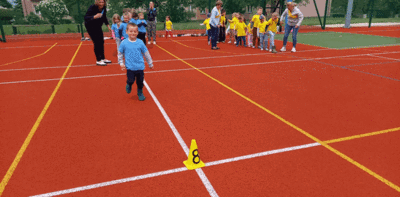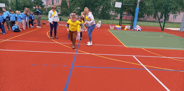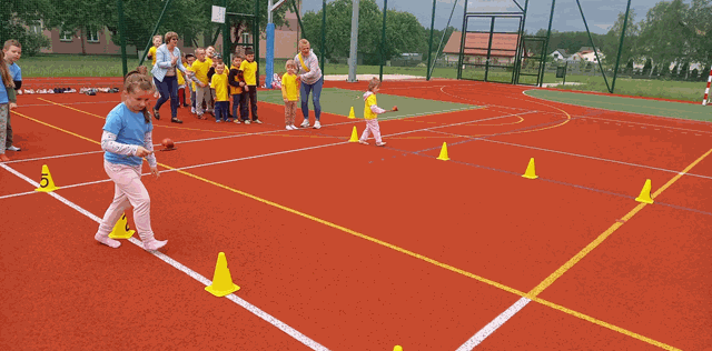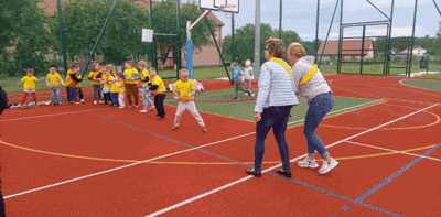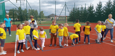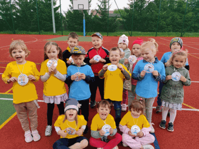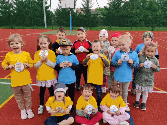 Szósty a zarazem ostatni już moduł „Misiowe zajęcia pod chmurką” projektu czytelniczego „Mały Miś w Świecie Wielkiej Literatury” realizowanego przez grupę Słoneczka, już za nami. Głównym zadaniem modułu był udział przedszkolaków w zawodach sportowych w oparciu o historie zaczerpnięte z bajek oraz wykorzystanie w nich atrybutów bajkowych. Zawody postanowiliśmy przeprowadzić na nowym boisku naszych starszych kolegów i zaprosiliśmy do zabawy grupę Żabki. I tak dzieci miały za zadanie min. posegregować piłeczki (nawiązanie do Kopciuszka, który oddzielał groch od maku), przejść po linie w okularach pana Hilarego, przejść z jabłkiem Śnieżki położonym na drewnianej łyżce, przebiegnąć w dużych kaloszach Kota w butach. Dużo radości sprawiło wszystkim przeciąganie liny (tak jak w wierszu Rzepka) dzieci kontra panie. Na zakończenie zawodów wszyscy uczestnicy otrzymali medale ,,Najlepszego sportowca”. Ostatni moduł projektu miał za zadanie zachęcać dzieci do aktywności sportowej, rozwijać u nich wyobraźnię i przynieść dużo radości i tak też było…