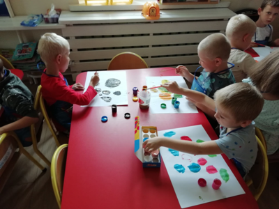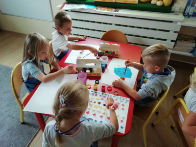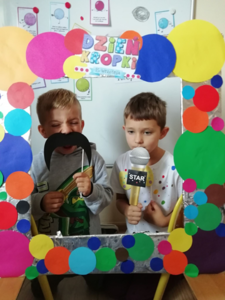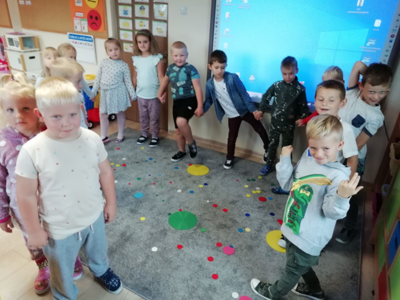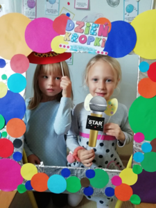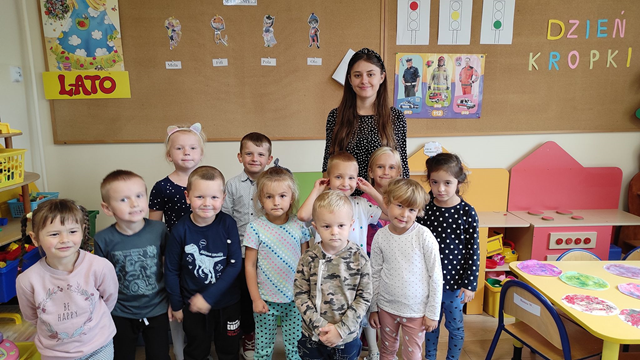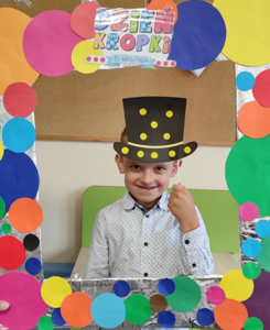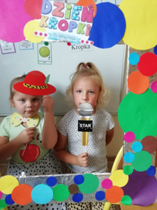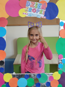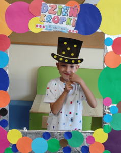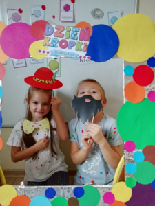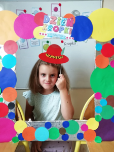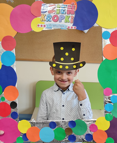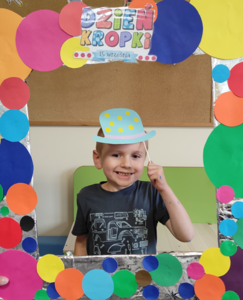 W dniu 15 września 2022 roku w naszym przedszkolu świętowaliśmy Międzynarodowy Dzień Kropki, czyli The Dot Day. Międzynarodowy Dzień Kropki jest świętem kreatywności, odwagi i zabawy. Jego celem jest pomoc dzieciom w odkrywaniu własnych talentów, poznaniu mocnych stron, wyrabianiu wiary we własne siły. Wspólne świętowanie rozpoczęliśmy od obejrzenia krótkiej bajki o małej Vashti. Po projekcji filmiku dzieci własnymi słowami opowiedziały historię dziewczynki. Malowaliśmy kropki farbami na dużych kartkach. Radości i uśmiechu oraz fantazji w stawianiu kolorowych kropek nie zabrakło. Później bawiliśmy się w szukanie kropki, składaniu kropki z części, liczeniu kropek, ćwiczyliśmy z kropką. Na zakończenie wszystkich zabaw z dzieci ruszyły do sesji zdjęciowej z ramką w kropki.