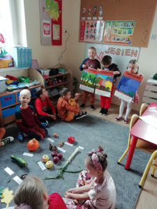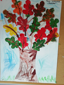 W naszym przedszkolu sezon jesienny uważamy za otwarty. 23 września oficjalnie powitaliśmy nową porę roku, która będzie panować przez najbliższe miesiące. W kąciku przyrody pojawiły się dary jesieni: kolorowe liście, kasztany, żołędzie. Pani Jesień, która zaczęła swoje panowanie przygotowała dla naszych przedszkolaków ciekawe zabawy. Dzieci szukały rozrzuconych darów jesieni, tańczyły przy jesiennej muzyce, wykonały drzewo w jesiennych barwach różnymi technikami.