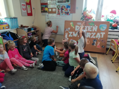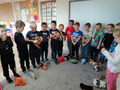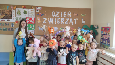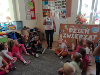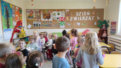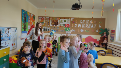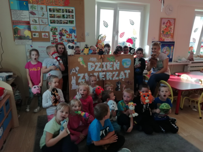 4 października w naszym przedszkolu obchodziliśmy Światowy Dzień Zwierząt. Z tej okazji dzieci przyniosły do przedszkola swoje ulubione pluszowe zwierzątka. Przedszkolaki wypowiadały się na temat swoich ulubieńców, poznały różne ciekawostki na temat zwierząt oraz wiadomości dotyczące opieki nad nimi. Tego dnia w naszym przedszkolu poruszaliśmy między innymi tematy, które miały na celu uświadomienie dzieciom tego, że o zwierzęta należy dbać oraz że są to istoty, które często potrzebują naszej pomocy. W tym dniu w naszym przedszkolu rozbrzmiewały piosenki i bajki o zwierzętach. Dzieci odgadywały zagadki i zwierzęce odgłosy, tworzyły kodeks przyjaciela zwierząt i uczestniczyły w zabawach ruchowych, których tematem przewodnim były zwierzęta. Powstały także piękne prace plastyczne upamiętniające ten wyjątkowy dzień.