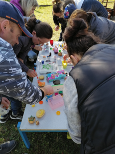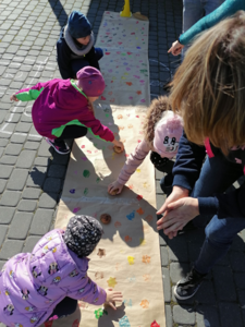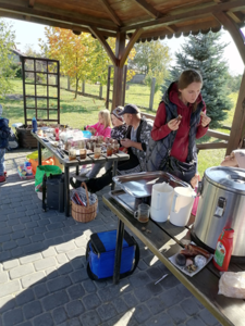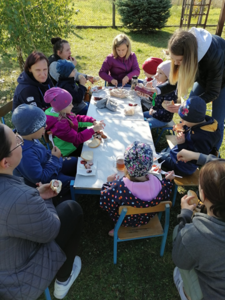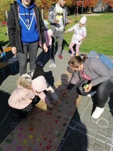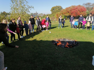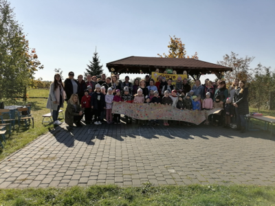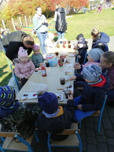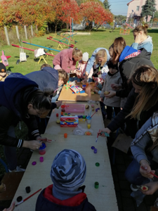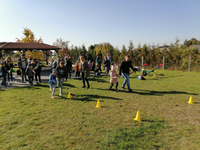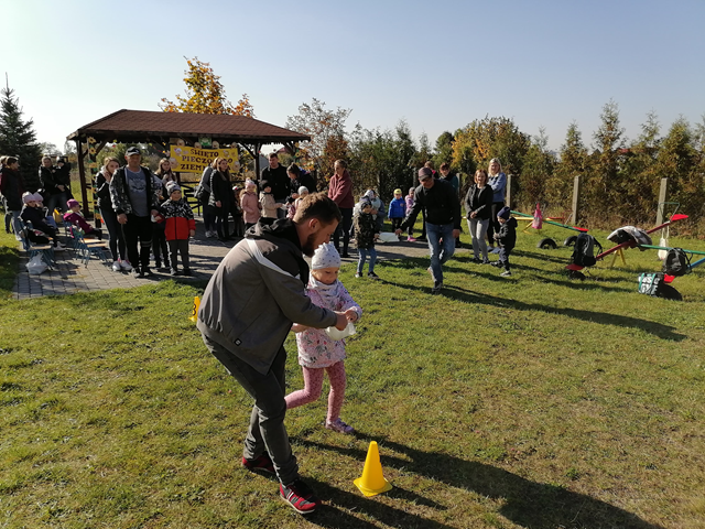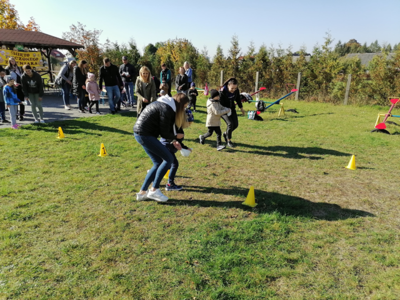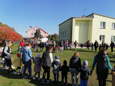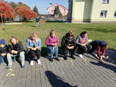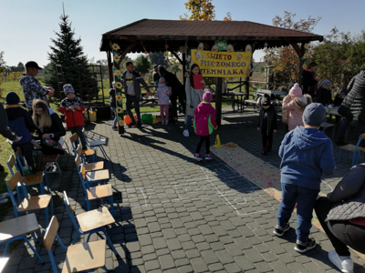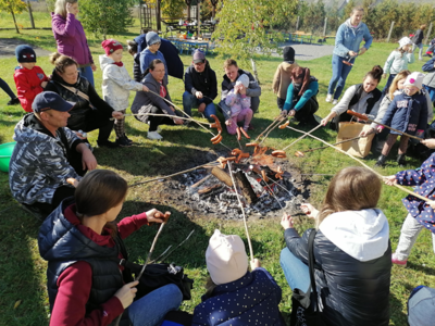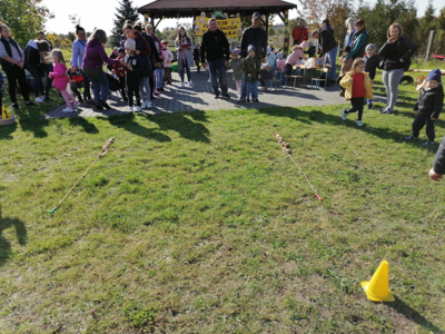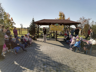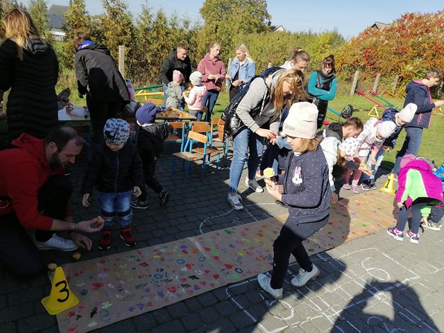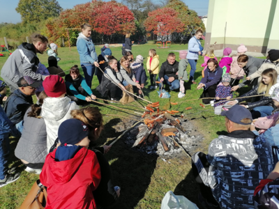 7 października obchodziliśmy w naszym przedszkolu Święto Pieczonego Ziemniaka. To był wspaniały dzień. Dzieci od samego rana z niecierpliwością czekały na ognisko oraz wspólne zabawy z rodzicami. Pani dyrektor Ilona Słupczyńska powitała dzieci i rodziców oraz życzyła wszystkim wspaniałej zabawy. To był dzień pełen wrażeń. Dzieci brały udział w zabawach, których tematem przewodnim był bohater święta, czyli ziemniak. Uczestnicy szukali ziemniaków ukrytych na podwórku przedszkolnym, tańczyli taniec Woogie Boogie, sadzili ziemniaki na czas, rzucali do celu oraz brali udział w wyścigu z ziemniakiem. Rodzice brali udział w konkurencji na najdłuższą obierkę z ziemniaka. Wszyscy wspólnie wykonali i udekorowali także szal dla Pani Jesieni. Nie zabrakło pieczonej kiełbaski oraz ziemniaków z ogniska. Wszyscy świetnie się bawili i z pewnością zapamiętają ten dzień na długo.
