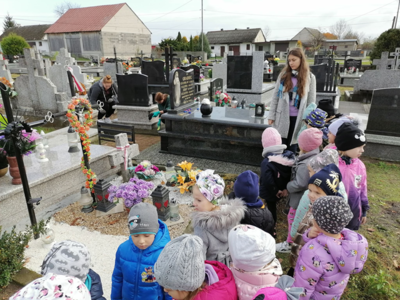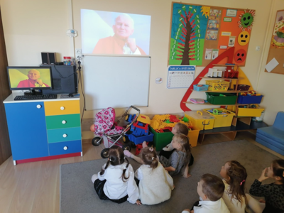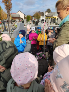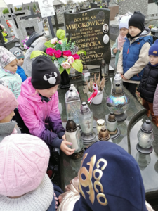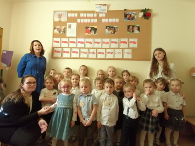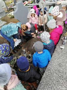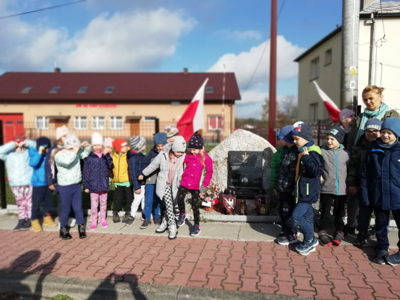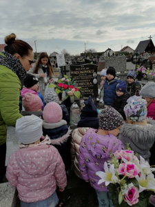 W ubiegłym tygodniu nasze przedszkole brało udział w akcji Ministerstwa Edukacji i Nauki #Szkoła pamięta. Głównym zamierzeniem podjętych w jej ramach działań, było zwrócenie uwagi młodych ludzi na potrzebę pielęgnowania pamięci o bohaterach naszej wolności, szczególnie tych, którzy są związani z historią danego miejsca, regionu, społeczności. Słoneczka i Jagódki również zaangażowały się w różnorodne działania upamiętniające historyczne wydarzenia oraz lokalnych patriotów. W tym tygodniu obie grupy udały się na wycieczkę na pobliski cmentarz, aby oddać cześć bohaterom, którzy walczyli za nasz kraj. Dzieci odwiedziły grób Jana Zdeba, Grób Nieznanego Żołnierza, Józefa Mroza oraz Bolesława Więckowicza. Wszyscy wspólnie odwiedzili także pomnik Jana Pawła II znajdujący się przy kościele. Jagódki wykonały w tym tygodniu także prace plastyczne - flagi Polski, które później przywieszone zostały do gazetki upamiętniającej postać Jana Pawła II. Słoneczka wykonały natomiast pracę plastyczną pt. "Grób moich bliskich", nawiązującą do ważnego dnia, jakim jest Dzień Zaduszny. Starszaki złożyły także kwiaty oraz znicze pod pamiątkową tablicą lokalnego patrioty Zygmunta Napoleona Rzewuskiego. Grupa Słoneczek udała się z wizytą do pobliskiej biblioteki. Odbyła się tam krótka prelekcja przygotowana przez bibliotekarkę - Panią Dorotę Machnik, po której dzieci mogły pooglądać zdjęcia oraz pamiątki dotyczące życia Rzewuskiego. Pod koniec tygodnia obie grupy obejrzały r film edukacyjny dotyczący wielkiego Polaka – Jana Pawła II.