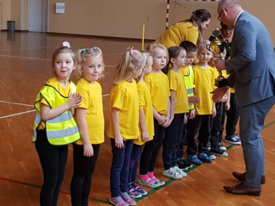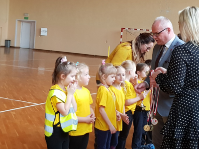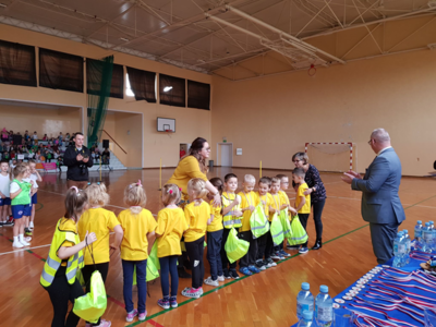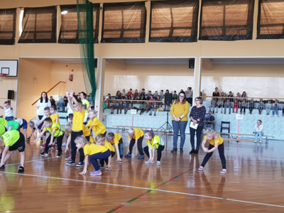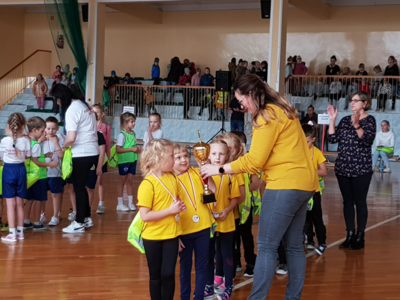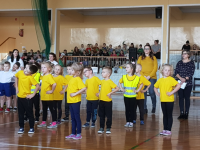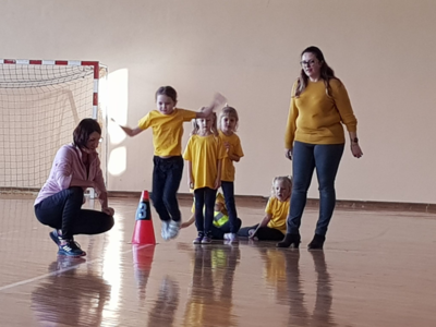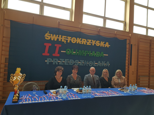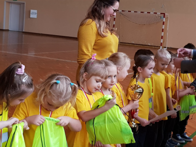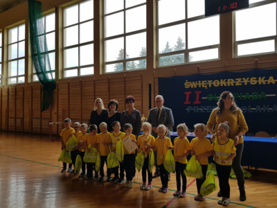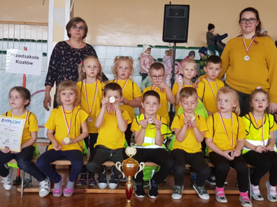 W ubiegły piątek tj. 4 listopada od samego rana dało się wyczuć w naszym przedszkolu duże poruszenie i małe napięcie. Tego dnia nie tylko robione były zdjęcia na które dzieci czekały z niecierpliwością, ale również 12 z nich wybierało się na gminny etap II Świętokrzyskiej Olimpiady Przedszkolaka do hali sportowej w LO w Małogoszczu. Z uśmiechem na ustach i werwą do dobrej zabawy wyruszyły na spotkanie z kolegami i koleżankami z przedszkola w Małogoszczu i ze Złotnik. Konkurencje w jakich wzięli udział nasi mali sportowcy to: bieg z pałeczką sztafetową na dystansie 15m, tor przeszkód, skok w dal z miejsca oraz rzut woreczkiem do koła hula-hop. Pola Zacharska, Maja Terelak, Martyna Kolekta, Kornelia Smorenda, Zuzanna Jesiołkowska, Jowita Jaworska to skład drużyny dziewczynek, skład drużyny chłopców to Franciszek Włodarski, Tobiasz Lol, Wojciech Sosnowski, Wojciech Staniek, Szymon Szproch i Krzysztof Chajczyk. Zajęliśmy III miejsce i do przedszkola wróciliśmy z pucharem, medalami i nagrodami. Nasi mali sportowcy spisali się na medal i dali z siebie wszystko.