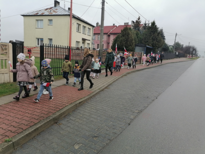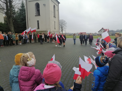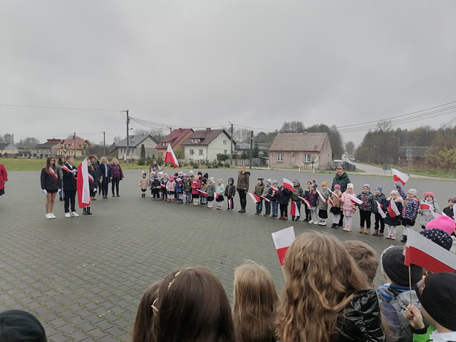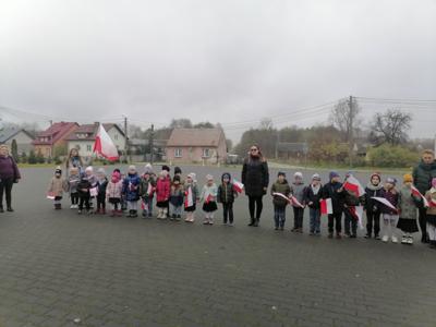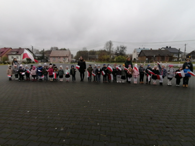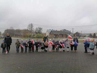 Po raz kolejny nasze przedszkole wzięło udział w akcji Ministra Edukacji i Nauki ,,Szkoła do hymnu”. Jednak w tym roku 10 listopada przedszkolaki wraz ze swoimi starszymi koleżankami i kolegami ze szkoły podstawowej wyruszyli w marszu z biało-czerwonymi fagami na plac kościelny w Kozłowie. O symbolicznej godzinie 11:11 w obecności pocztu sztandarowego odśpiewaliśmy hymn narodowy.