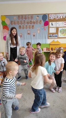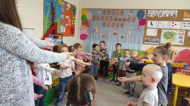 25 listopada przedszkolaki z grupy "Jagódek" uczestniczyły w obchodach Światowego Dnia Pluszowego Misia. Każde dziecko przyszło tego dnia do przedszkola ze swoim pluszowym przyjacielem. "Jagódki" zostały zaproszone do wspólnej zabawy w misiowej krainie. Poznały historię pluszowego misia, wspólnie recytowały wiersze o misiach, bawiły się przy piosenkach "Niedźwiadek" oraz "Jadą, jadą misie". Dla dzieci przygotowano wiele atrakcji: zabawy ruchowe, misiowe zagadki, zgadywanki oraz fotobudka z wizerunkiem "Misia". Przedszkolaki wykonały również papierowe misie. Ten dzień w przedszkolu był pełen uśmiechu oraz wspólnej zabawy. Z pewnością to misiowe przyjęcie pozostanie w naszych wspomnieniach na długi czas :)