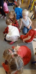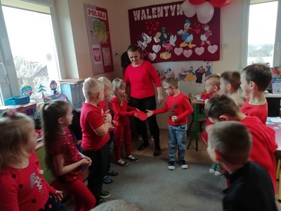 We wtorek, 14 lutego w naszym przedszkolu odbyły się Walentynki. Ten szczególny dzień stał się świetną okazją do wspólnej zabawy. Dzieci z radością uczestniczyły w tańcach, a podczas spontanicznych zabaw chętnie okazywały sobie uczucia. Wspólnie spędzony czas w walentynkowym nastroju był okazją do prowadzenia z dziećmi rozmów na temat znaczenia uczuć w naszym życiu. Przedszkolaki dowiedziały się, że tym co naprawdę liczy się w życiu jest życzliwość i szacunek okazany drugiemu człowiekowi. Na zakończenie dzieci zrobiły walentynki dla ukochanej osoby i otrzymały słodki upominek w kształcie serduszka.