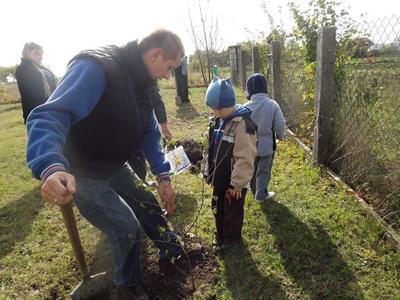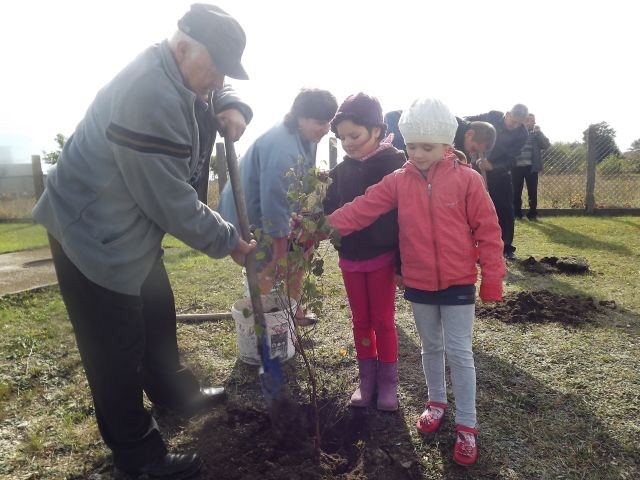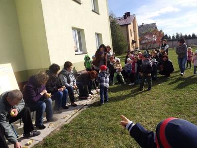 Dodatkową atrakcją było posadzenie drzew w ogrodzie przedszkolnym z wielkim zaangażowaniem dziadków Naszych przedszkolaków: Stanisława Knap, Stanisława Bętkowskiego, Bogusława Jurczak.