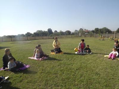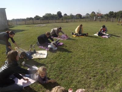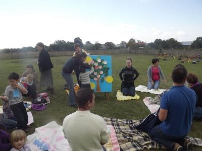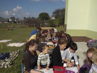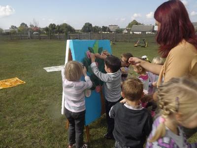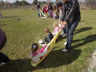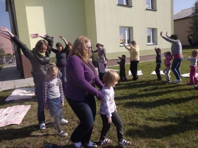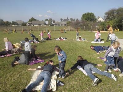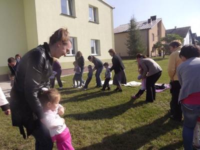 Wykorzystując ostatnie promienie lata zajęcia zorganizowaliśmy w ogrodzie przedszkolnym. Rodzice wraz z dziećmi mogli wykazać  się sprawnością ruchową jak również śpiewem, recytacją prostych wierszyków oraz wspólnym przygotowywaniem wizytówek. Każde dziecko w nagrodę za odwagę otrzymało „medal zucha malucha". Spotkanie odbyło się w miłej i radosnej atmosferze.
