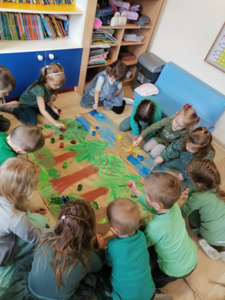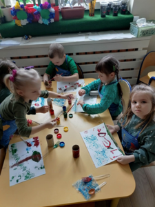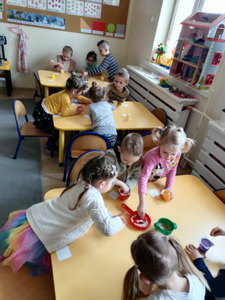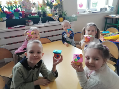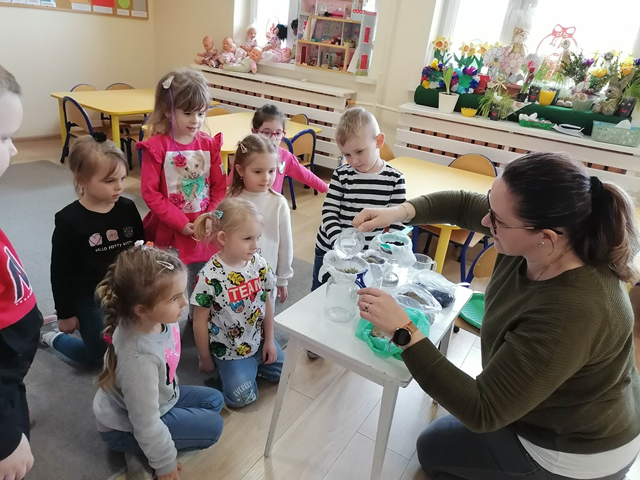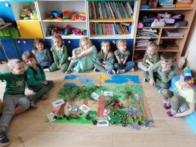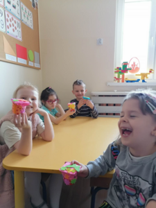 Nasze przedszkole w roku szkolnym 2022/2023 po raz kolejny włączyło się do programu ,,Mamo, tato, wolę wodę!”. W ramach programu dzieci biorą udział w cyklu zajęć, których głównym celem jest podniesienie poziomu wiedzy oraz kształtowanie zdrowych nawyków : picia wody, recyklingu i dbania o przyrodę. Każdemu z zajęć towarzyszy wesoła gromadka przyjaciół Zdrojka :wiewiórka Basia, miś Lesiu, jelonek Janek, wydra Wanda, myszka Fiki i wilk Olek. Podczas zajęć dydaktyczno-wychowawczych został zrealizowany cykl zajęć dotyczący ,,Eko przygody” , z którego dzieci dowiedziały się co to jest smog i jak zmniejszyć jego występowanie w środowisku, dowiedziały się jakie są eko-pojazdy, bawiły się w eko-alfabet, zabawy sensoryczne, dowiedziały się jakie okazy żyją w otoczeniu wody, wykonały plakat zaśmieconego lasu i dowiedziały się jak dbać o niego, wykonały plastikowe obrazki, dowiedziały się jaka gleba jest potrzebna roślinom, wykonały grzechotki, dowiedziały się jak segregować śmieci i co można ponownie wykorzystać. Podsumowując należy podkreślić, że przeprowadzony program jest doskonałym przykładem kształtowania prozdrowotnych nawyków żywieniowych wśród najmłodszych. Poprzez wspólną zabawę oraz podejmowanie różnorodnych aktywności, dzieci zdobyły wiele cennych informacji, które będą mogły zastosować w praktyce. Dzieci poprzez praktyczne działania poszerzyły swoją wiedzę na temat roli wody, zwiększyły wiedzę na temat segregacji śmieci, właściwego odżywania oraz aktywności fizycznej dla zdrowia i dobrego samopoczucia.