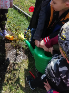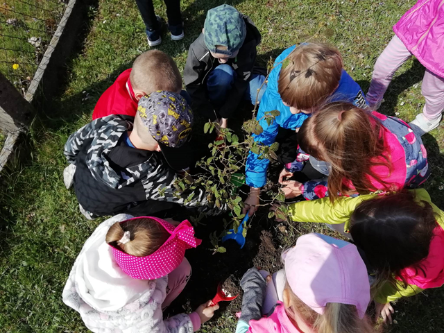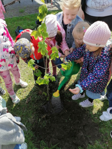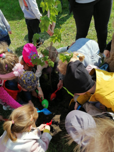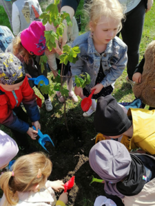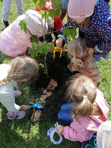 24 kwietnia podczas obchodów Dnia Ziemi przedszkolaki wysłuchały opowiadania o naszej planecie, tańczyły do piosenki pt. ,,Leśne duszki”, zastanawiały się co dobrego możemy zrobić dla naszej planety? W tym dniu dzieci poznawały zasady, których należy przestrzegać, aby chronić środowisko naturalne, uczyły się poprawnego segregowania śmieci, wysłuchały inscenizacji wiersza pt. ,,Sznurek Jurka” L. Szołdry oraz poznały trudne słowo recykling♻️. Zwieńczeniem naszego Dnia Ziemi było zasadzenie drzewka klonu w naszym ogrodzie przedszkolnym. Wszystkie te działania miały na celu podkreślenie, jak ważne jest nasze zaangażowanie w działania na rzecz ochrony naszej planety oraz rozbudzenie w dzieciach potrzeby dbania o naturę.