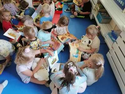 W środę 7 czerwca nasze przedszkole wzięło udział w „Jak nie czytam jak czytam”. Celem akcji jest promocja czytania książek wśród uczniów, inicjowanie mody na czytanie, wspieranie dzieci i młodzieży aktywnych czytelniczo. Nasze przedszkolaki nie umieją jeszcze czytać, dlatego słuchały jak czyta pani Jagoda Słabisz – bibliotekarka z Biblioteki Publicznej w Kozłowie. Bajka „Tort urodzinowy” była bardzo ciekawa i podobała się wszystkim. Na koniec dzieci otrzymały od pani Jagody coś słodkiego i oglądały kolorowe ilustracje w książkach.