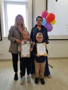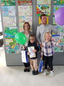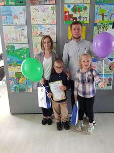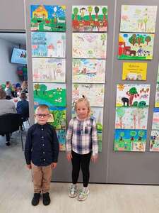 Z wielką radością przyjęliśmy informację o wyróżnieniu prac naszych przedszkolaków Kornelii Smorendy i Krzysztofa Chajczyka w Wojewódzkim Konkursie Plastycznym "Skąd się biorą produkty ekologiczne" organizowanym przez Wojewódzką Stację Sanitarno - Epidemiologiczną w Kielcach. Zwycięzcy wspólnie z opiekunem p. A. Orzeł i rodzicami uczestniczyli w finale rozdania nagród w Centrum Laboratoryjno - Konferencyjnym Wojewódzkiej Stacji Sanitarno - Epidemiologicznej w Kielcach.