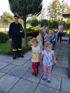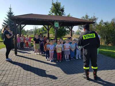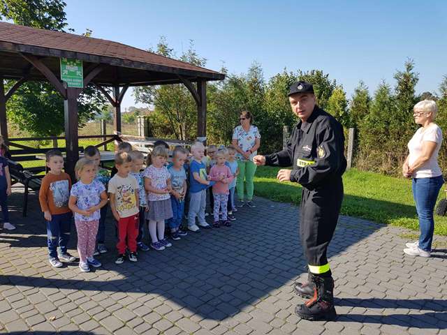 Bezpieczeństwo dzieci w przedszkolu to bardzo ważna sprawa. Dlatego 28 września przeprowadzona została ewakuacja próbna. Przedszkolaki uważnie słuchały poleceń nauczycieli i druha Piotra z Ochotniczej Straży Pożarnej w Kozłowie.
