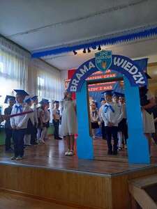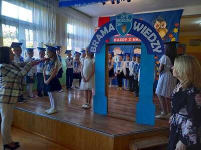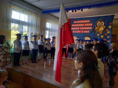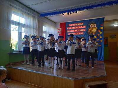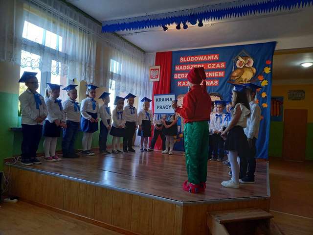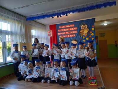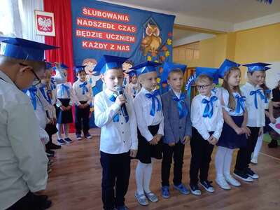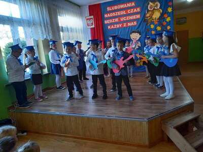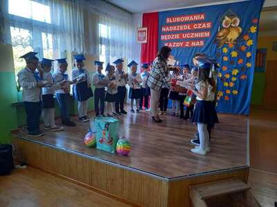 18 października 2023r. odbyła się szkole niezwykła uroczystość - ŚLUBOWANIE UCZNIÓW KLASY I na którą zostały zaproszone przedszkolaki z grupy Jagódki. Aby przejść przez bramę wiedzy pierwszoklasiści musieli wykazać się wiedzą oraz umiejętnościami artystycznymi. Udowodnili, że w pełni zasługują na miano pierwszoklasisty. Każdy był pasowany na ucznia przez Panią Dyrektor symbolicznym ołówkiem. Nie obyło się też bez życzeń, prezentów i słodkości. Pierwszoklasistom życzymy zapału do nauki, wielu radosnych chwil spędzonych w szkole, wysokich wyników w nauce oraz wspaniałych koleżanek i kolegów.