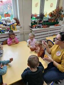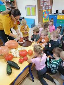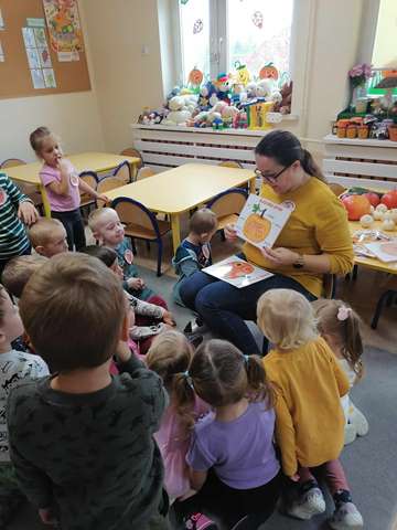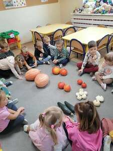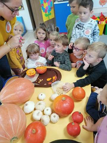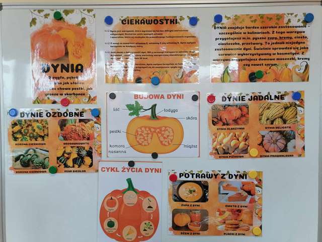 23 października w naszym przedszkolu w grupie ,,Pszczółki” obchodziliśmy Dzień Dyni. Wspólnie uczestniczyliśmy w zajęciach, podczas których poznaliśmy bardzo zdrowe i urokliwe warzywo jakim jest dynia. Zajęcia zaczęliśmy od zagadki i ciekawostek o dyni, poznaliśmy jej liczne odmiany i zastosowanie. Nie zabrakło zabaw ruchowych do których wykorzystaliśmy dynię. Dowiedzieliśmy się jaki jest cykl życia dyni i zajrzeliśmy do jej wnętrza – to była super zabawa. Mieliśmy nawet okazję skosztować domowego dżemu dyniowo-jabłkowego, który był bardzo smaczny. Na zajęciach układaliśmy puzzle, dopasowywaliśmy cienie i emocje. Na koniec pokolorowaliśmy dużą kolorowankę i zrobiliśmy sobie wspólne pamiątkowe zdjęcie. To był dzień pełen wrażeń i radości.