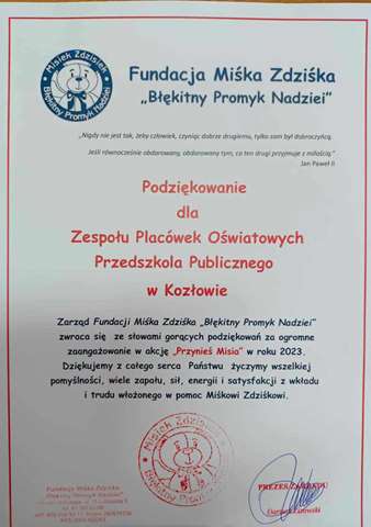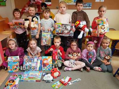 W dniach 6-15 listopada odbyła się zbiórka na rzecz dzieci ze Świętokrzyskiego Centrum Onkologii zorganizowana przez Fundację Miśka Zdziśka. Nasze przedszkole włączyło się do tej akcji.  Zbieraliśmy nowe pluszowe maskotki, przybory szkolne, puzzle i kolorowanki. I tym razem nie zawiedliście. Zebrane rzeczy zostały zawiezione do siedziby fundacji. Serdecznie dziękujemy wszystkim za zaangażowanie i okazane serce.