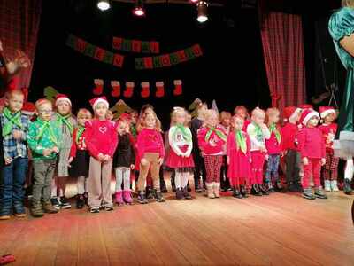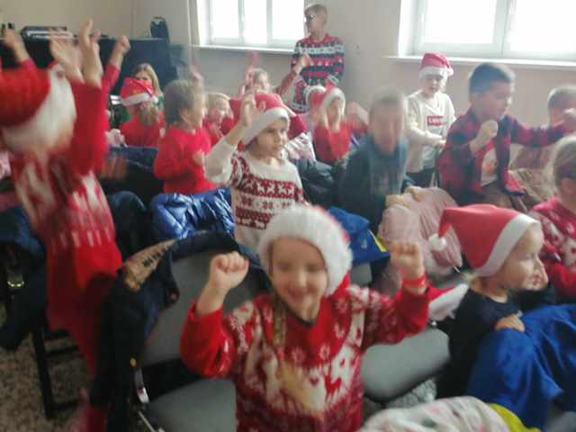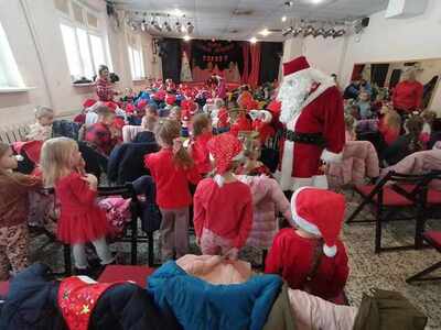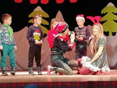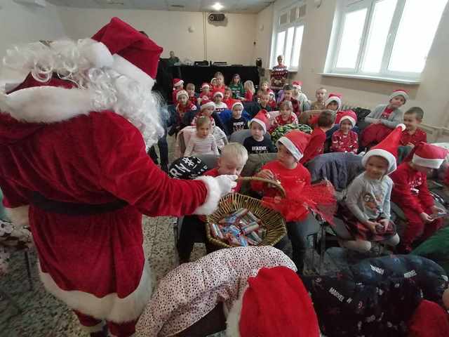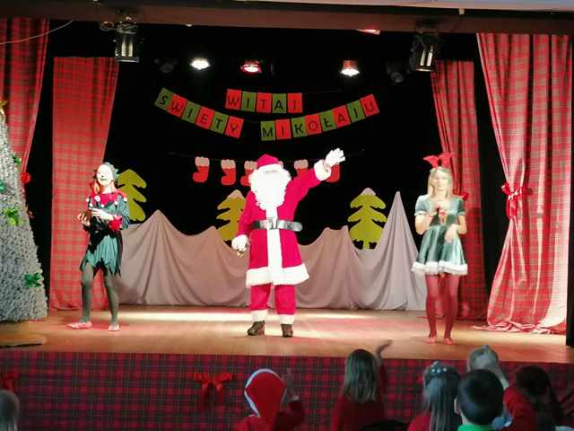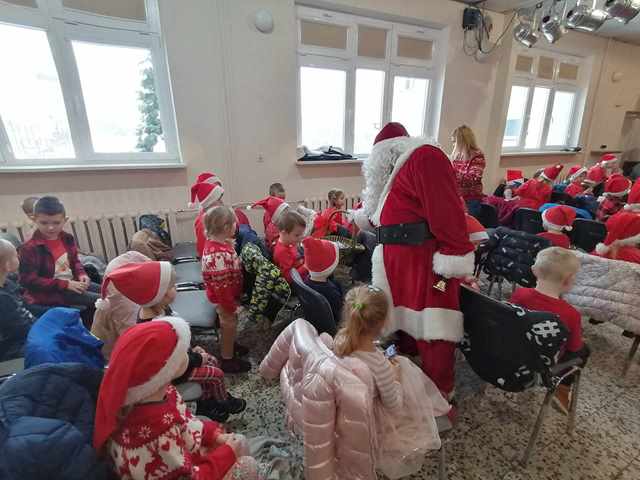 I znów przedszkolaki spotkały się z Mikołajem. Tym razem w Domu Kultury w Małogoszczu. Zanim przyszedł jego pomocnicy elf i renifer umilali dzieciom czas oczekiwania. Były wspólne tańce, śpiewy i konkursy. Mikołaj przyszedł z koszem pełnym słodyczy.