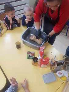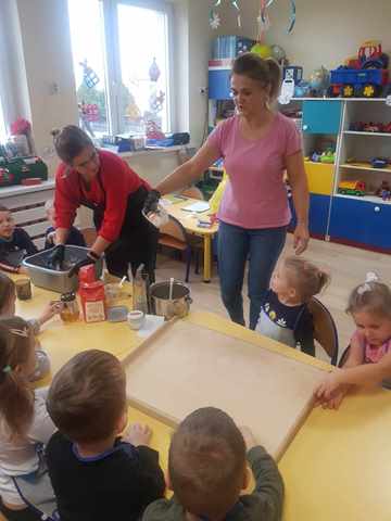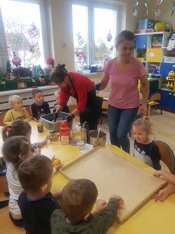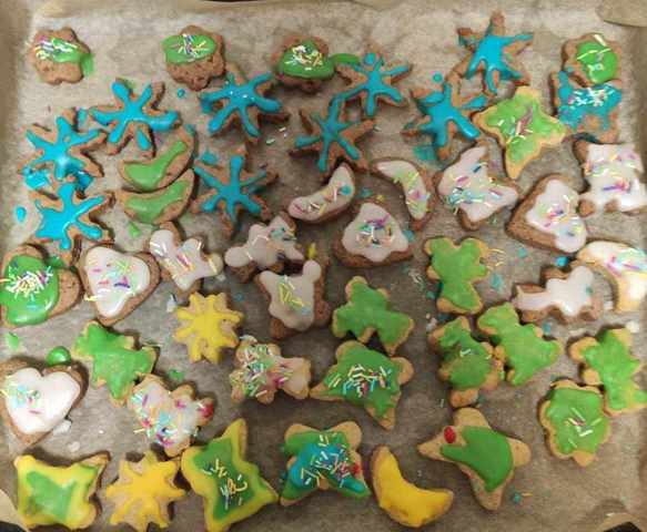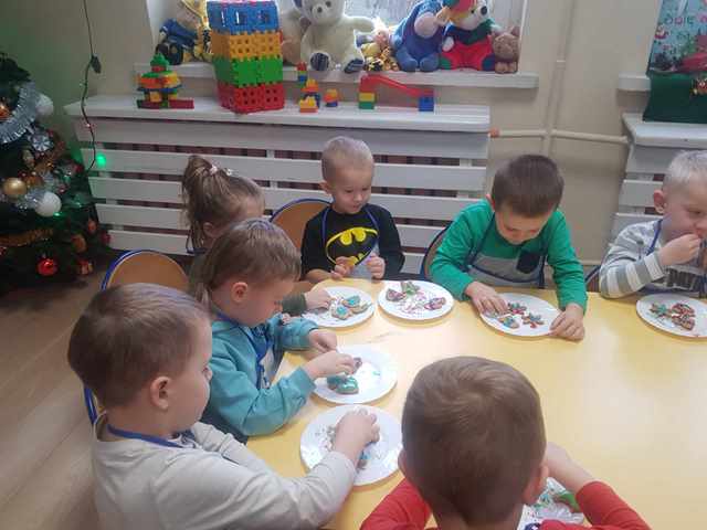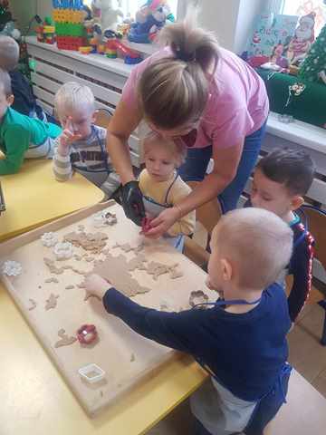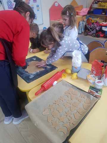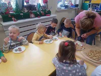 Jak w każdym domu przed Świętami Bożego Narodzenia jest gorąca atmosfera. Każdy krząta się, aby przygotować coś dobrego. Ta atmosfera udzieliła się również Pszczółkom. Dlatego 13 grudnia wraz z paniami piekły pierniczki. Zapach unosił się w całym przedszkolu. Gdy pierniczki się już upiekły mali cukiernicy udekorowali je kolorowym lukrem i słodkimi cukiereczkami. Swoimi wypiekami poczęstowali dzieci z grupy Jagódki oraz przygotowali z nich małe prezenty dla gości zaproszonych na Jasełka Bożonarodzeniowe.