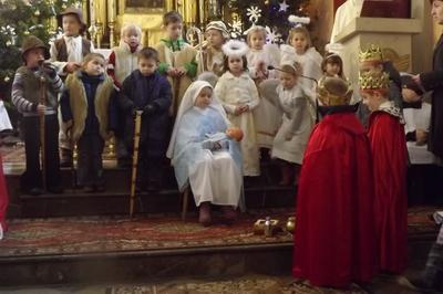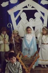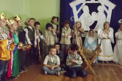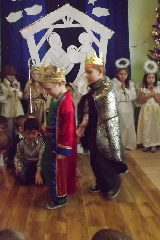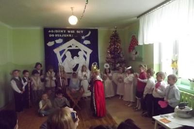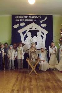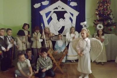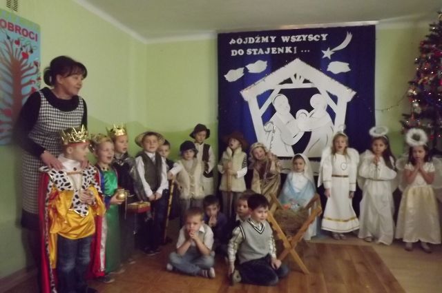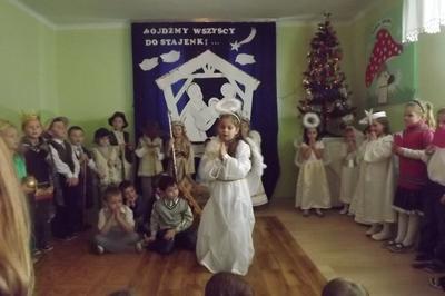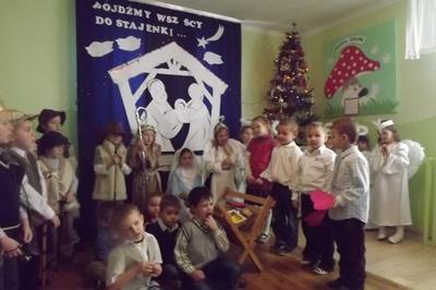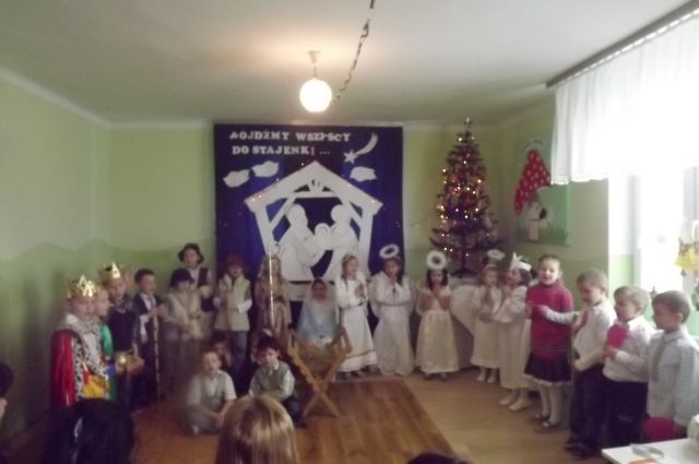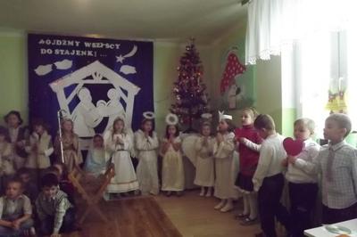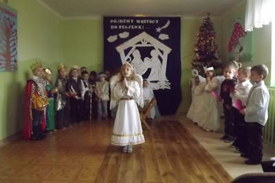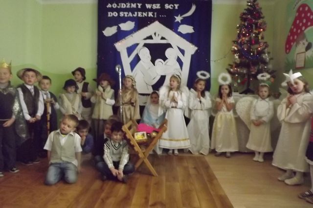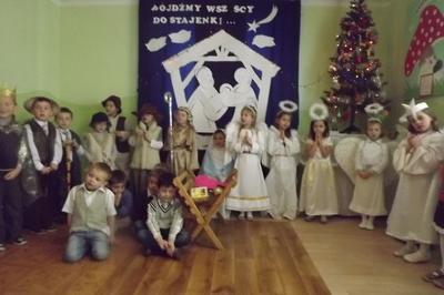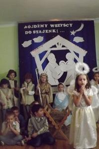 Przedstawienie było wyjątkowe. Mali aktorzy, we wspaniałych strojach prezentowali się doskonale. Sala wypełniona była aniołkami, które śpiewały kolędy, pastorałki i wspaniale recytowały przygotowane wierszyki. Do szopki przybyli też pastuszkowie oraz dzieci, które przyniosły Dzieciątku dary oraz serduszka.  Jasełka obejrzeli rodzice, dziadkowie oraz zaproszeni goście, ks. proboszcz J. Korona i ks. prefekt T. Kubicki. Pani dyrektor złożyła wszystkim świąteczne i noworoczne życzenia, po czym nastąpiło łamanie się opłatkiem