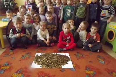 Przedszkole od wielu lat bierze udział w tej akcji. Nasi wychowankowie wiedzą,że najdrobniejsze monety zebrane w tak dużej liczbie mogą stworzyć ogromny fundusz dzieki któremu udzielona zostanie pomoc wielu dzieciom,które znalazły się w trudnej sytuacji życiowej.Uzbieraliśmy i przekazalismy Towarzystwu Nasz Dom-122,30zł.Dziekujemy Rodzicom i Dzieciom za pomoc we wspieraniu akcji i liczymy na coraz wiekszą "górę grosza" w kolejnych zbiórkach.