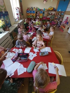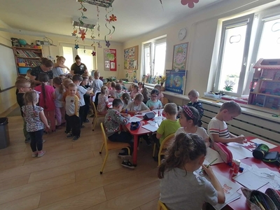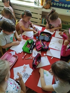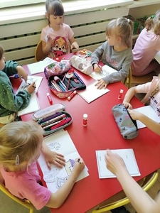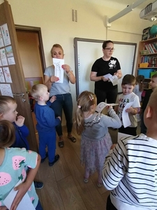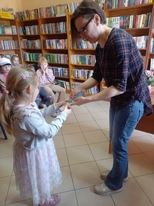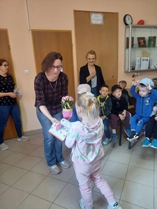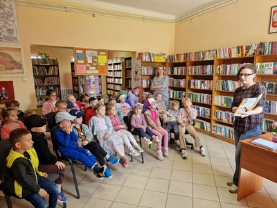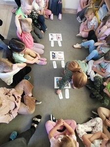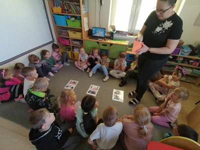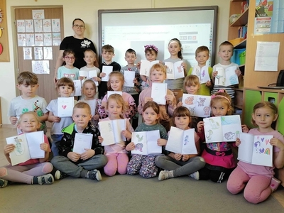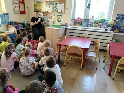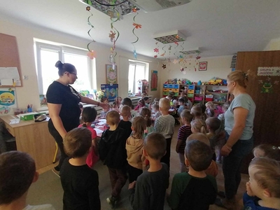 9 maja w naszym przedszkolu grupa Jagódki rozmawiała na temat jakie książki lubią czytać, przeglądać, jakie ich interesują. Rozmawialiśmy również o tym jak należy o nie dbać i obejrzeliśmy filmik edukacyjny w jaki sposób powstaje książka. Dzieci rozwiązywały zagadki związane z książkami oraz samodzielnie wykonały swoją książkę. Podczas ich pracy odwiedziła nas grupa młodsza Pszczółki, którzy z zaciekawieniem przyglądali się jak ich starsi koledzy tworzą swoje pierwsze książki. Otrzymali od starszaków zakładki do książek do samodzielnego wykonania. Na podsumowanie naszych zajęć przygotowaliśmy laurkę i kwiaty z okazji Dnia Bibliotekarza i Bibliotek. Wspólniez grupą młodszą Pszczółki wybraliśmy się do naszej Biblioteki Publicznej w Kozłowie, aby poznać pracę bibliotekarza i złożyć życzenia pani Jagodzie oraz wręczyć jej laurkę
