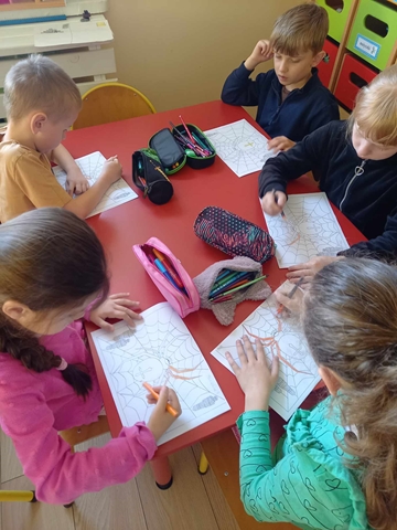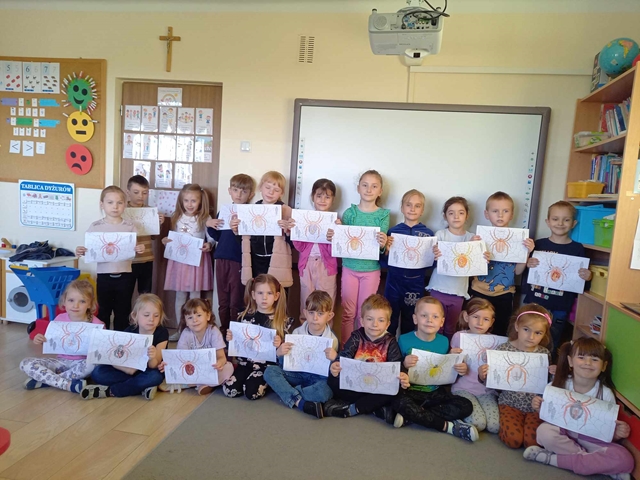 Dzieci z grupy Jagódki dowiedziały się, że „Pająki nie są takie straszne” podczas kolejnych zajęć w ramach projektu edukacyjnego „Robale i inne małe stworzenia”. Poznały różne pająki, ich budowę, środowisko życia i sposób odżywiania. Dzieliły się swoimi doświadczeniami w kontaktach z pająkami. Pokolorowały również pająka krzyżaka.