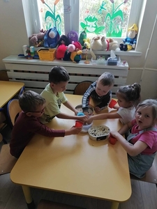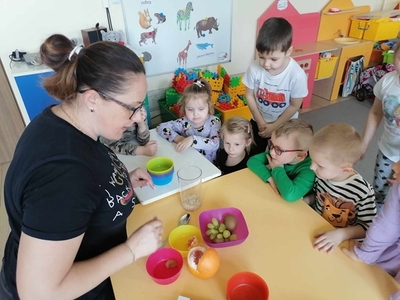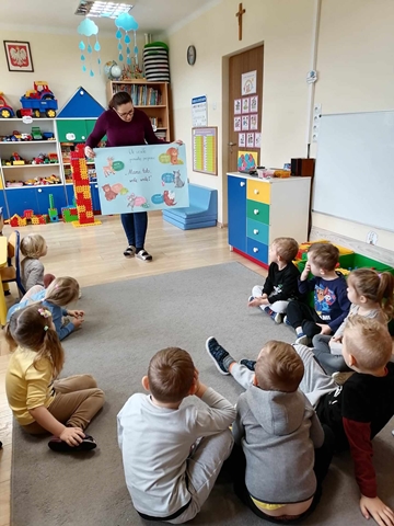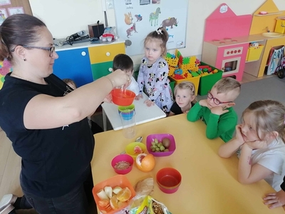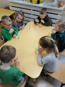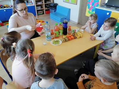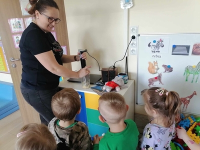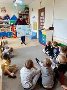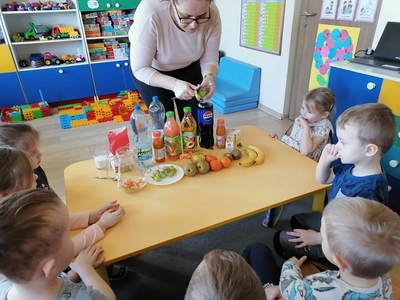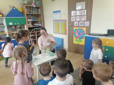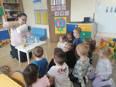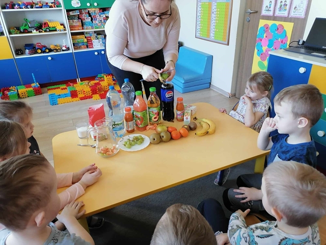 Podczas zajęć dydaktyczno - wychowawczych został zrealizowany cykl zajęć dotyczący wody. ,,Przygody na zdrowie” za pomocą którego dzieci zdobywały wiedzę o wodzie. Dowiedziały się co to jest woda i skąd pochodzi, jakie ma znaczenie dla ludzi, roślin i zwierząt oraz jakie ma zastosowanie w życiu codziennym. Nasze Pszczółki mają stały dostęp do wody i mogły po nią sięgać zarówno podczas wysiłku fizycznego jak i w każdej chwili. Z zajęć dowiedziały się również jak duże znaczenie ma picie wody dla organizmu oraz wyrobiły w sobie nawyk częstego jej picia. Podczas zajęć dzieci wykonały min.  swój własny kubek do picia wody, dowiedziały się, że należy szanować wodę i ją oszczędzać. Wiedzą gdzie schowała się woda, przeprowadziły doświadczenie z roślinami. Wiedzą, że należy unikać słodzonych napoi, poznały piramidę zdrowego żywienia. Wykonały doświadczenie, z którego dowiedziały się skąd się biorą bąbelki. Degustowały różne wody mineralne, brały udział w doświadczeniu, w którym wyciskały soki z owoców, warzyw i sprawdzały który ma więcej wody.