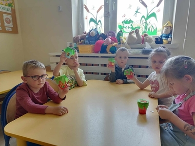 Nasze przedszkolaki z grupy Pszczółki włączyły się do programu ,,Mamo, tato, wolę wodę!”. W ramach programu dzieci brały  udział w cyklu zajęć, których głównym celem było podniesienie poziomu wiedzy oraz kształtowanie zdrowych nawyków : picia wody, recyklingu i dbania o przyrodę. Każdemu z zajęć towarzyszyła wesoła gromadka przyjaciół Zdrojka: wiewiórka Basia, miś Lesiu, jelonek Janek, wydra Wanda, myszka Fiki i wilk Olek.