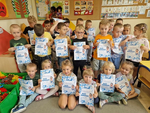 Wszystkie dzieci otrzymały dyplomy za udział w tak ważnym projekcie, jakim był projekt Bajki - Pomagajki czyli o magicznej mocy czytania bajek.