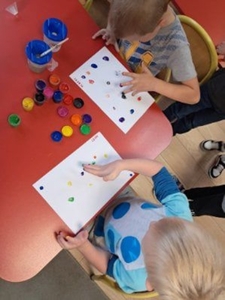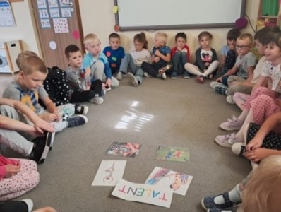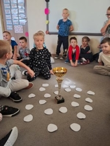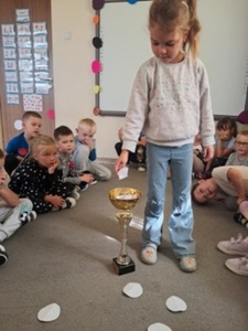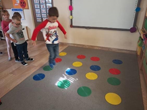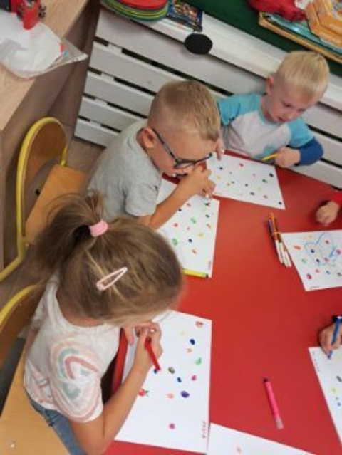 Tego dnia nasze ubrania wypełnione były kolorowymi kropkami. Na zajęciach uważnie wysłuchaliśmy opowiadania jak to zwyczajna kropka zmieniła świat małej dziewczynki o imieniu Vashti. Historia ta uświadomiła przedszkolakom, że każdy z nas ma jakieś ukryte zdolności, TALENT. Dostrzegaliśmy również, że świat składa się z kropek małych i dużych. Kropki gościły w zabawach ruchowych jak i matematycznych. Dzieci tańczyły do piosenki „Kropka”, budowały wiarę w siebie przy zabawie ,,Puchar komplementów”. Wykonały pracę plastyczną zamieniając kropki w zwierzątka, rośliny, postacie i kompozycje rozwijając przy tym swoje twórcze myślenie i kreatywność. Tego dnia było bardzo kolorowo i wesoło.