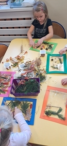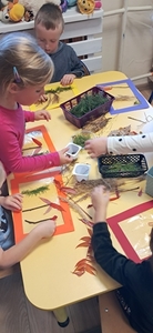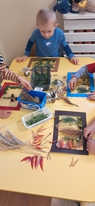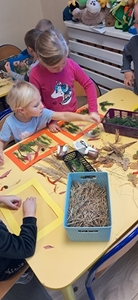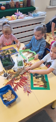 W tym roku grupa Pszczółki bierze udział w IV edycji Ogólnopolskiego Projektu Edukacyjnego  „Gramy Zmysłami”. Głównym celem projektu jest innowacyjne i kreatywne podejście do tematyki rozwijania zmysłów u dzieci. Tworzenie przez nauczycieli odpowiednich warunków do poznawania świata wieloma zmysłami oraz budowania wiedzy na temat integracji sensorycznej. Projekt będzie trwał do kwietnia 2025. Na każdy miesiąc przewidziane jest jedno zadanie. W październiku tworzyliśmy sensoryczne obrazy. Dzieci przypomniały sobie jakie mamy zmysły, jakie drzewa rosną w lesie i co oprócz drzew jeszcze można w lesie zobaczyć.  Przy użyciu gałązek, szyszek, kolorowych liści, patyczków, suchej trawy i mchu każdy przedszkolak stworzył obraz „Jesienny las”.